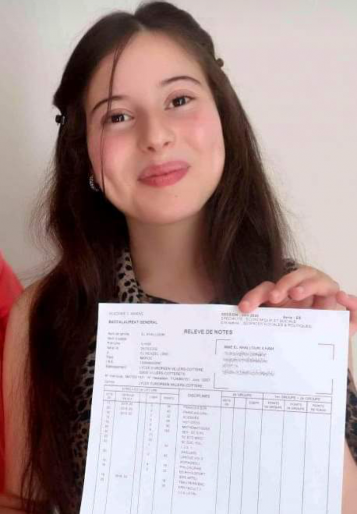 وعلى نفس النهج سارت التلميذة المغربية الهام الخلوفي القاطنة ببلدة فيفيير ضواحي العاصمة باريس التي حصلت على نفس الشهادة في فرنسا بمعدل 20/20.