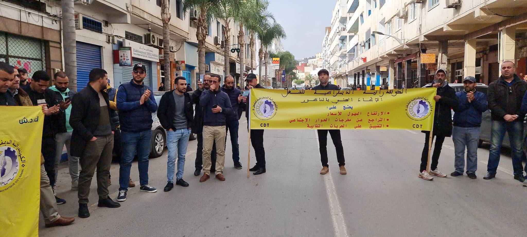 وشهد شارع يوسف ابن تاشفين تجمهر العشرات من المحتجين صباح اليوم الأحد قرب مقر الكونفدرالية الديمقراطية للشغل بالناظور، علاوة على تلاوين امنية مختلفة اغلقت الشارع تنفيذا لقرار منع المسيرة.