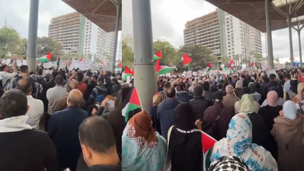 شاهد فيديو .. احتجاج بميناء الدار البيضاء ضد رسوّ سفينة محملة بالسلاح لإسرائيل
